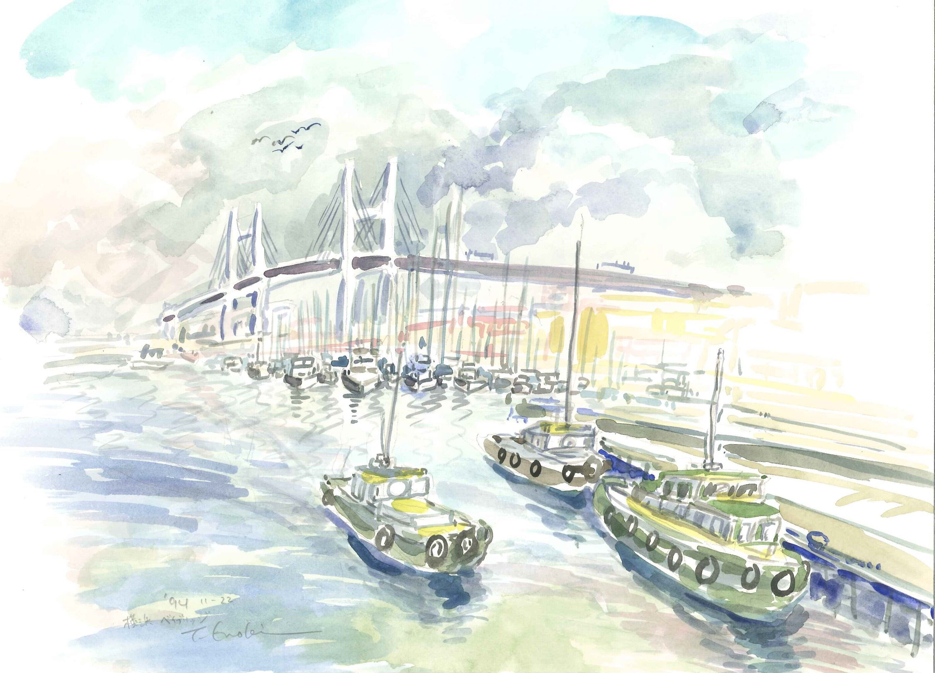 版画「空と雲と海と 104/300」横浜