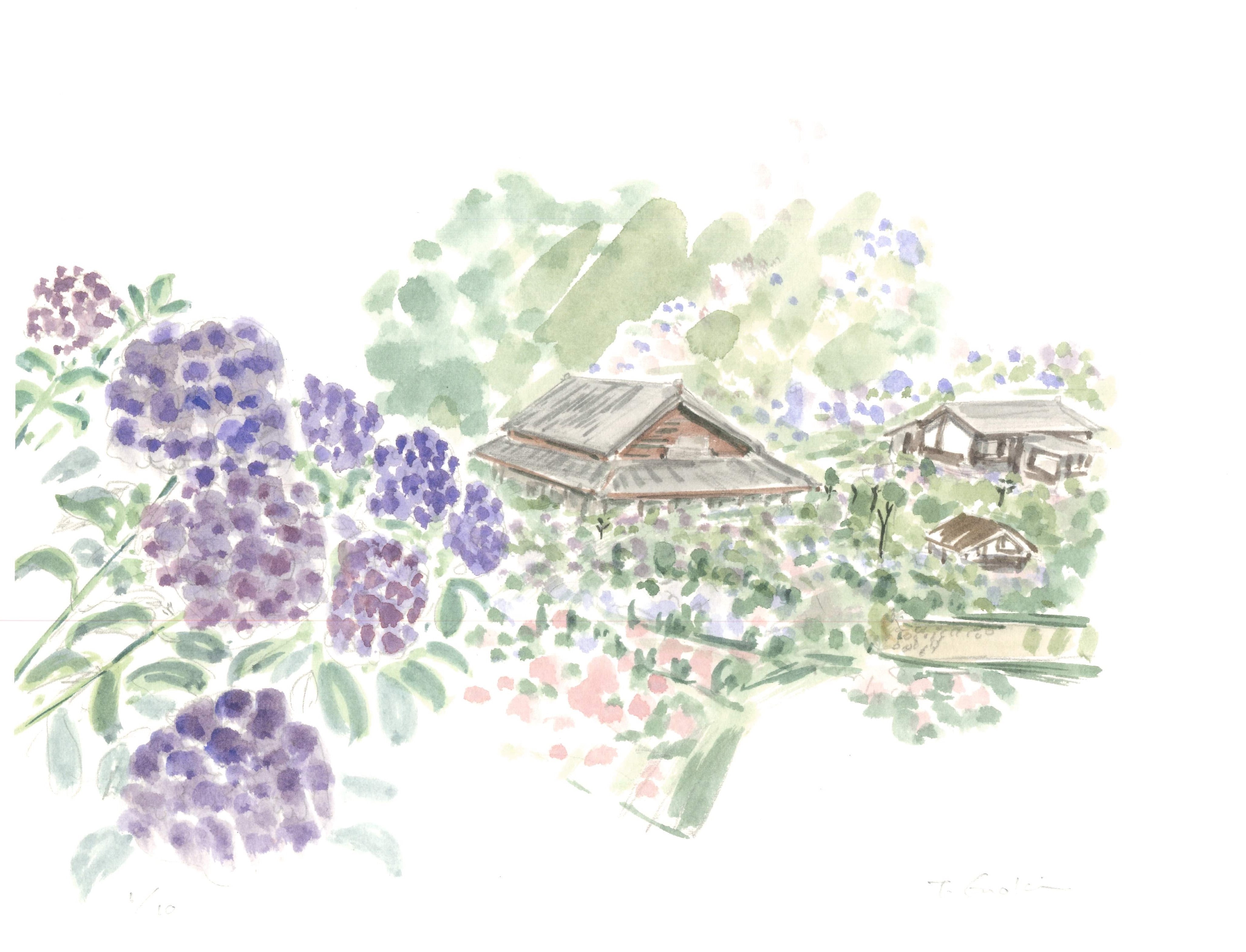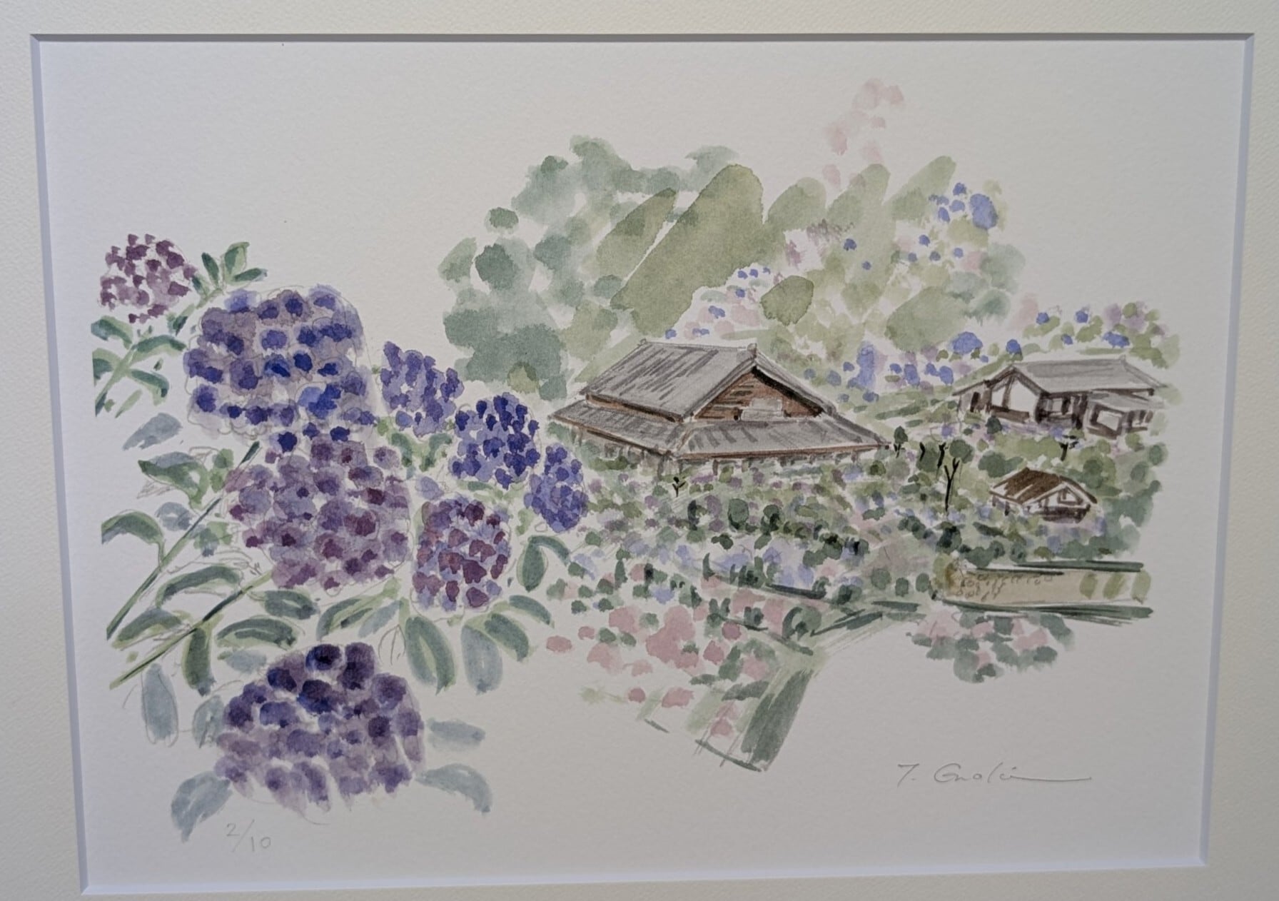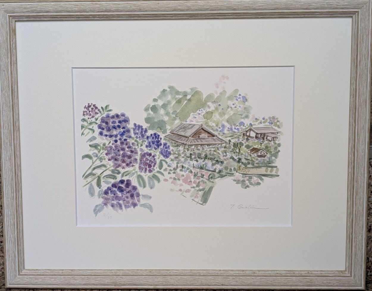 版画「あじさいの丘 2/10」鹿児島・出水
