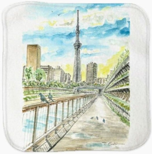 ミニタオルシリーズにNewデザイン。原画「福の神」をプリントしました。スカイツリーの絵柄で東京土産に喜ばれそう。ハンドタオルサイズより一回り小さなサイズで、 折りたたんでポケットに収まるサイズ。携帯しやすく大人から小さなお子様まで幅広くお使いいただけます。